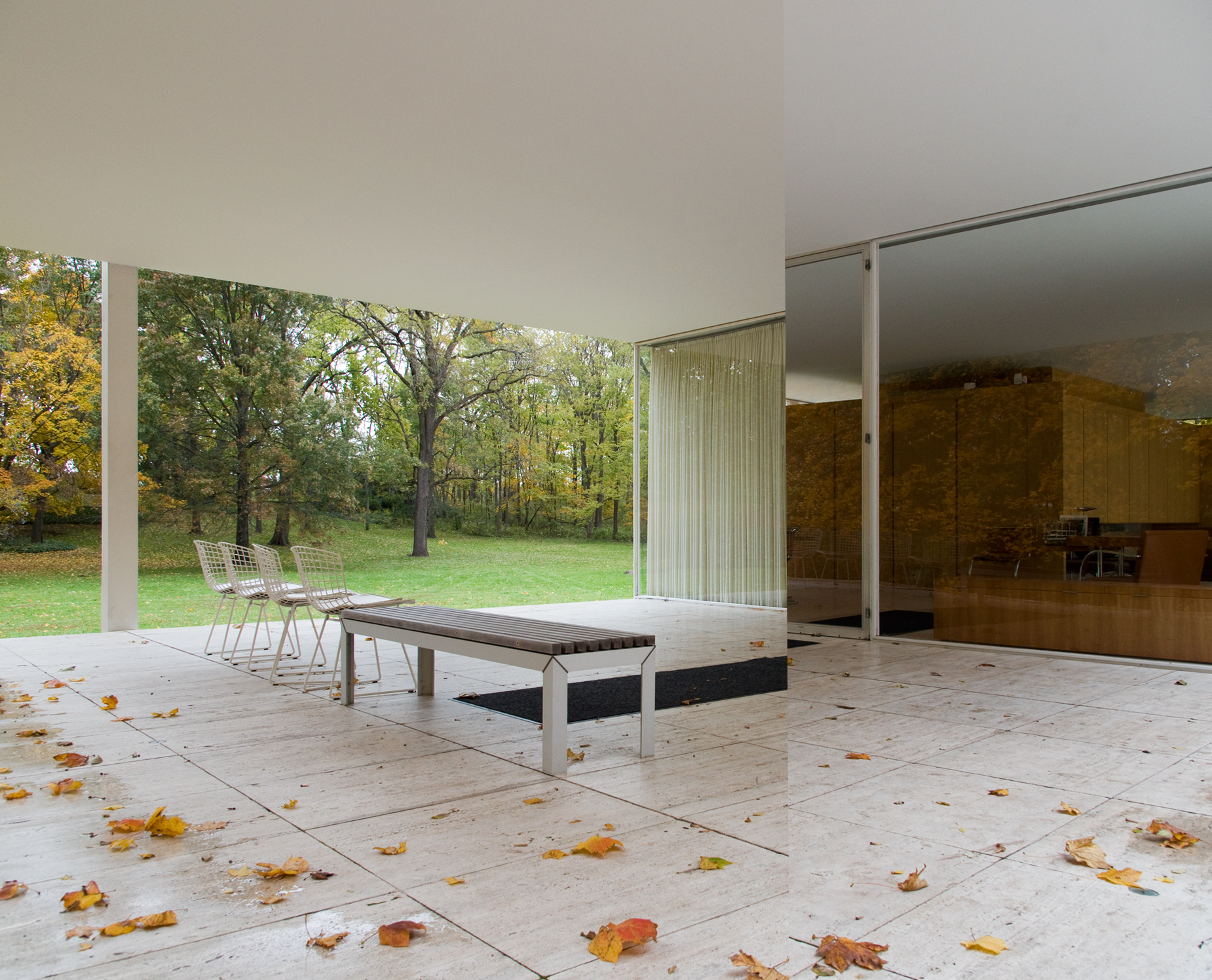 It was a good day, that I spent in good company and I was happy to be there either way, so it didn’t spoil my mood when the desk guy mentioned ‘restoration works’ when we collected our tickets for the Farnsworth house. It’s what we pay an entrance fee for, to enable the preservation of the house. So I can’t complain if that’s what they are doing: preserving the house. In this case: replacing one of its windows.