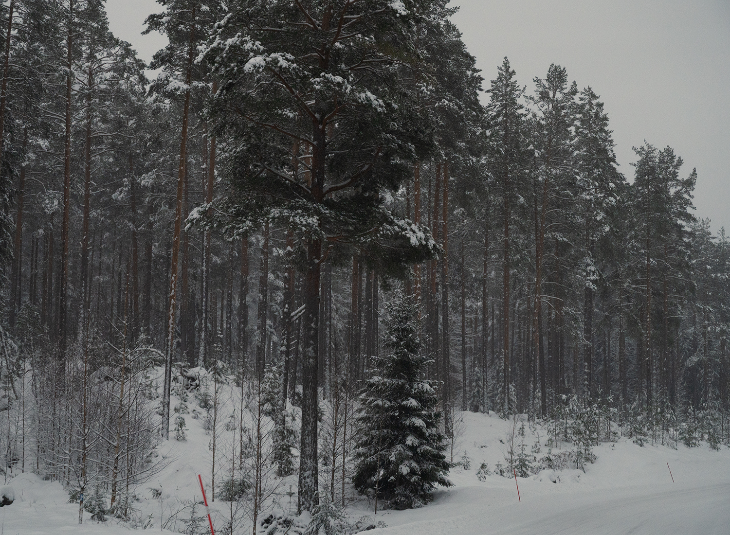 And so I ended up with lots of photos of snow-covered landscapes with trees and paths. Along with the question of how to make this a little more interesting. Bare trees and snow make files that are practically monochrome. And although I’ve been doing a