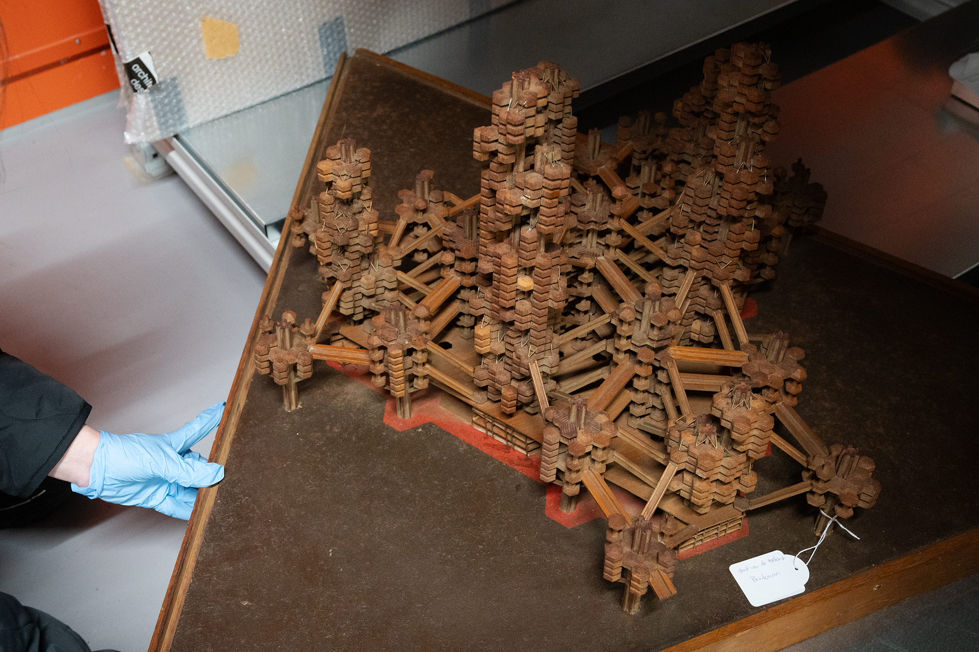 Located on the site of the Van Nelle factory, the depot occupies one of the factory warehouses and is used to store around 700 models in an open layout. As well as being a storage area, it’s also a workshop for collection managers, who work on restoring and registering models here or preparing them for transport as loans. To make the space suitable for both functions, architects Broekbakema installed a 460 m2 climate-controlled box in the warehouse in 2005.